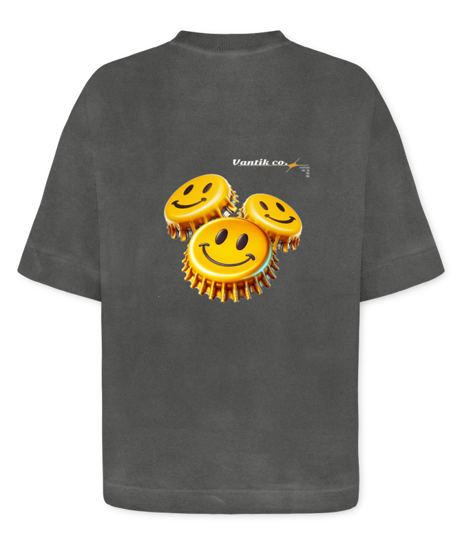 A camiseta Cap da VANTIK traz o espÃrito streetwear em uma peça boxy oversized que entrega presença, conforto e atitude na medida certa. Com estampa de tampinha de garrafa, ela transforma um sÃmbolo simples em um detalhe urbano cheio de personalidade, perfeito pra quem curte visual descolado e autêntico. É aquela camiseta que fecha o look sem esforço e ainda deixa claro que estilo também está nos detalhes.
