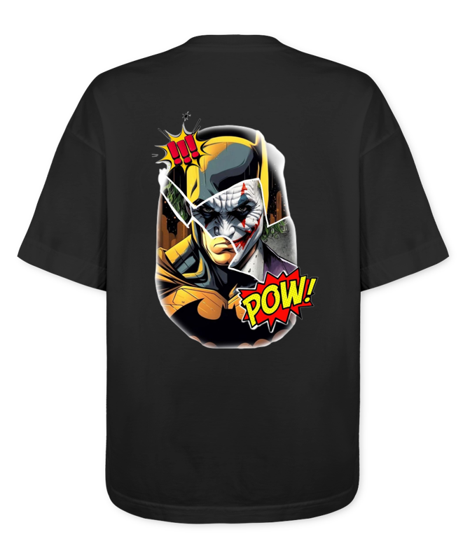 Camiseta super oversized VANTIK com estampa do Batman e Coringa, unindo atitude, ousadia e estilo urbano em uma peça só. Modelagem ampla, caimento pesado e visual marcante pra quem curte streetwear de verdade e quer se destacar em qualquer rolê. Feita pra quem não segue padrão, cria tendência.