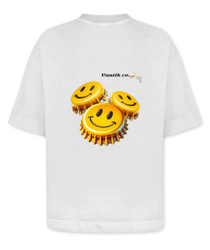 A camiseta Cap da VANTIK traz o espÃrito streetwear em uma peça boxy oversized que entrega presença, conforto e atitude na medida certa. Com estampa de tampinha de garrafa, ela transforma um sÃmbolo simples em um detalhe urbano cheio de personalidade, perfeito pra quem curte visual descolado e autêntico. É aquela camiseta que fecha o look sem esforço e ainda deixa claro que estilo também está nos detalhes.