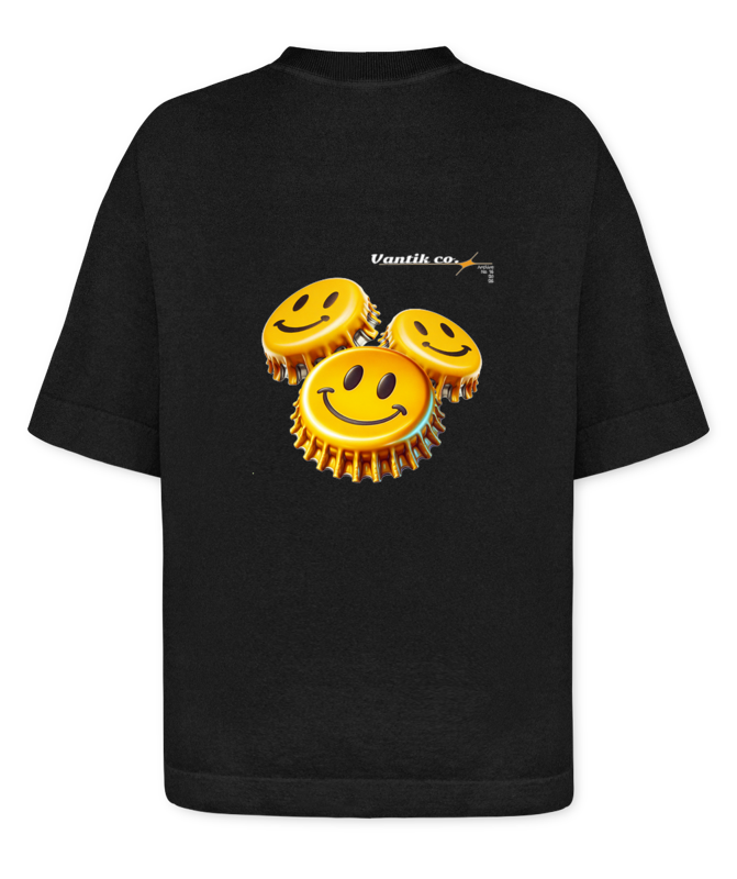 A camiseta Cap da VANTIK traz o espÃrito streetwear em uma peça boxy oversized que entrega presença, conforto e atitude na medida certa. Com estampa de tampinha de garrafa, ela transforma um sÃmbolo simples em um detalhe urbano cheio de personalidade, perfeito pra quem curte visual descolado e autêntico. É aquela camiseta que fecha o look sem esforço e ainda deixa claro que estilo também está nos detalhes.